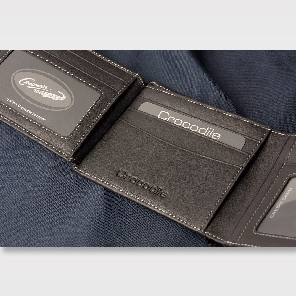 Crocodile 鱷魚皮件 男皮夾 短夾 左翻窗格 Nappa軟皮Classic經典系列 0203-3608-黑咖兩色