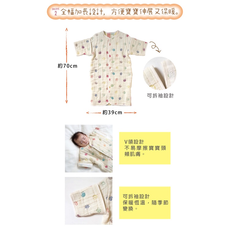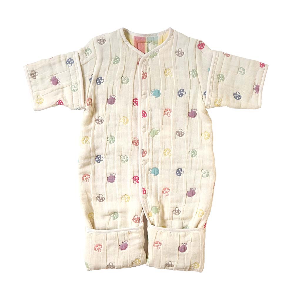 日本 Hoppetta 蘑菇六層紗可拆袖成長型睡袍(2款可選)【安琪兒婦嬰百貨】