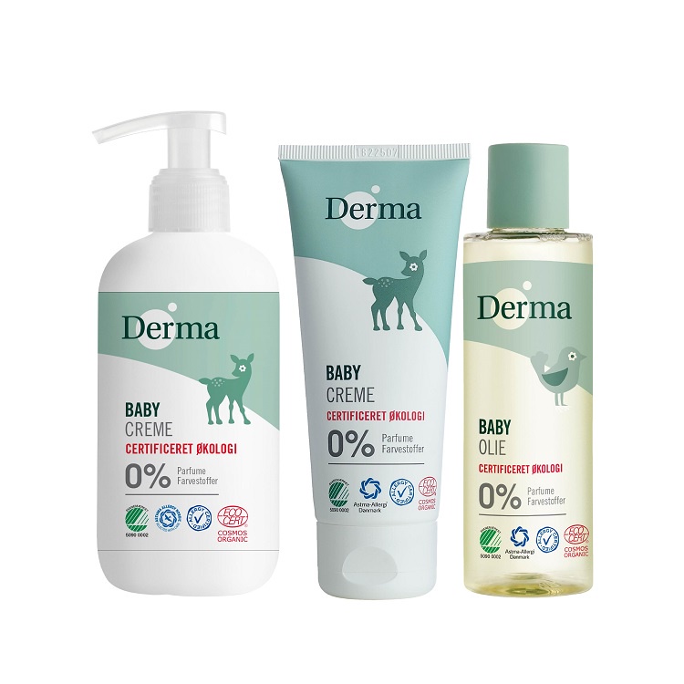 丹麥 Derma 秋冬保濕家庭組(寶寶有機滋潤護膚霜+寶寶有機按摩浴油)【安琪兒婦嬰百貨】
