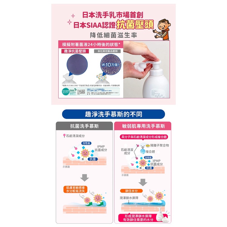 日本 獅王LION 趣淨敏弱肌專用洗手慕斯450ml+慕斯補充包450mlx2【安琪兒婦嬰百貨】