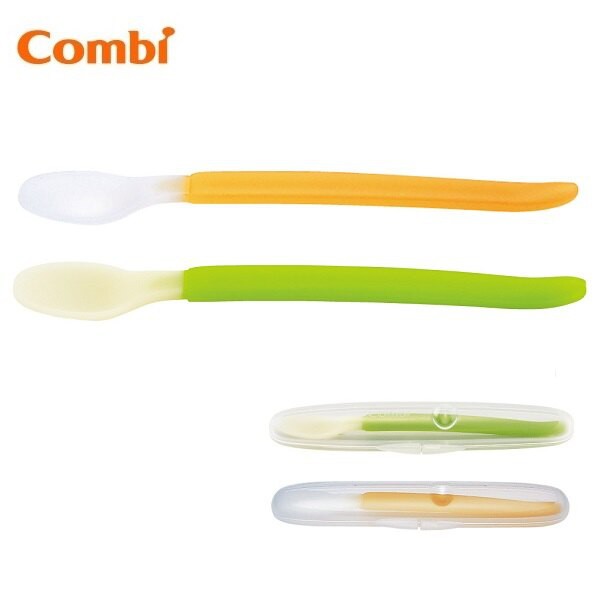 日本Combi康貝 優質軟質餵食匙 (橘/綠)【安琪兒婦嬰百貨】