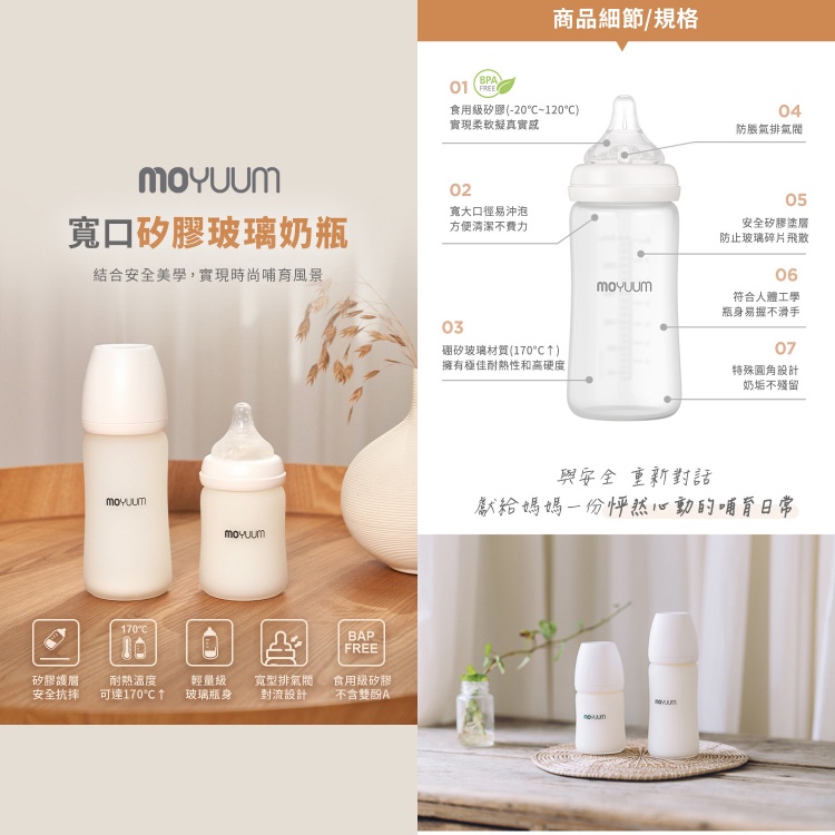 韓國 moyuum 寬口矽膠玻璃奶瓶(150/240ml)【安琪兒婦嬰百貨】|
