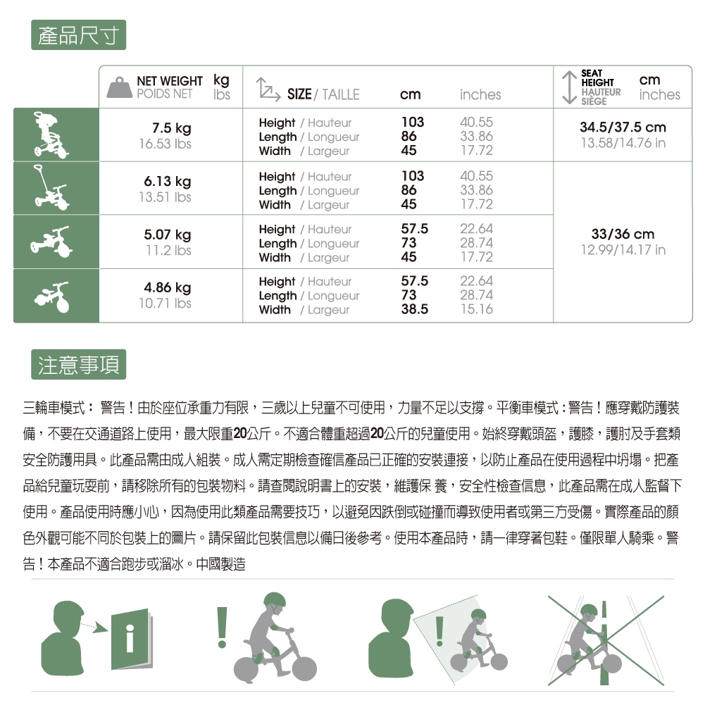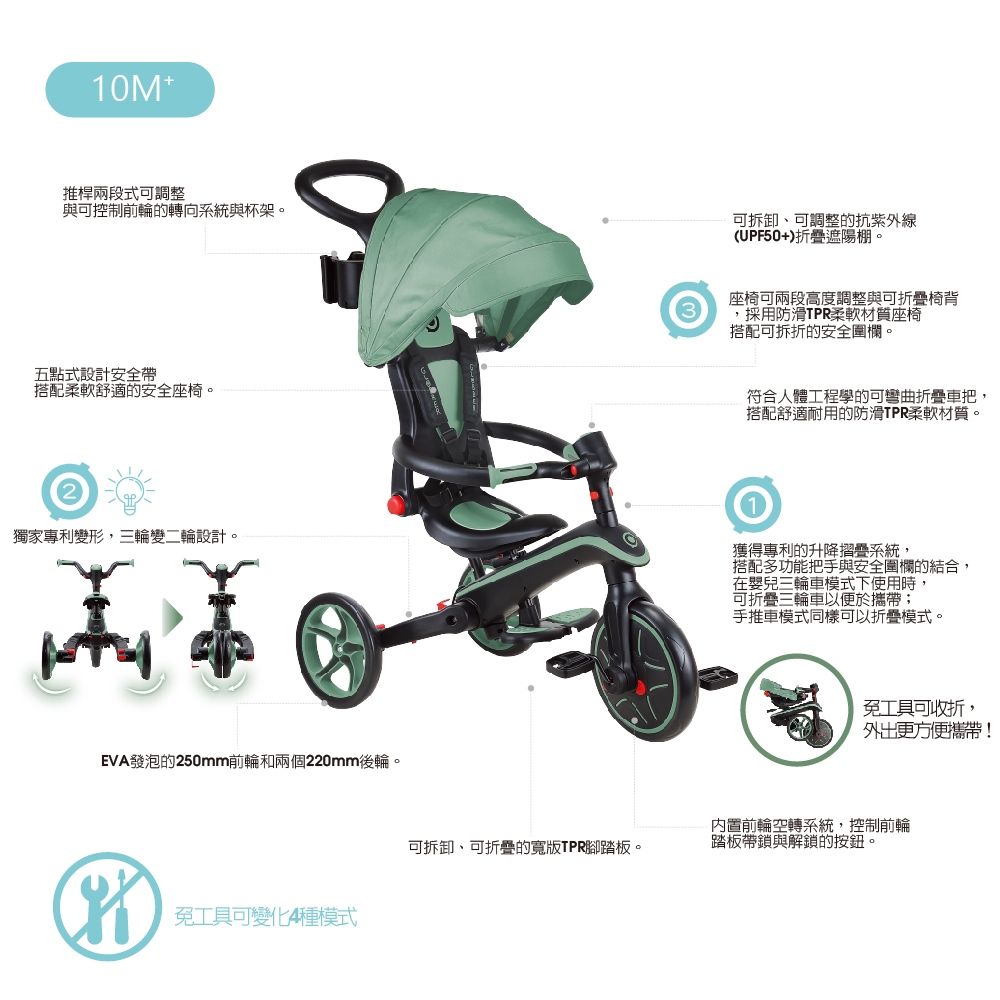 法國 GLOBBER 4合1 Trike多功能3輪推車折疊版(多色可選)