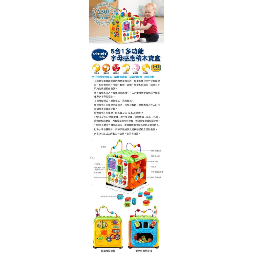 Vtech 5合1多功能字母感應積木寶盒(超大機關互動玩具)【安琪兒婦嬰百貨】