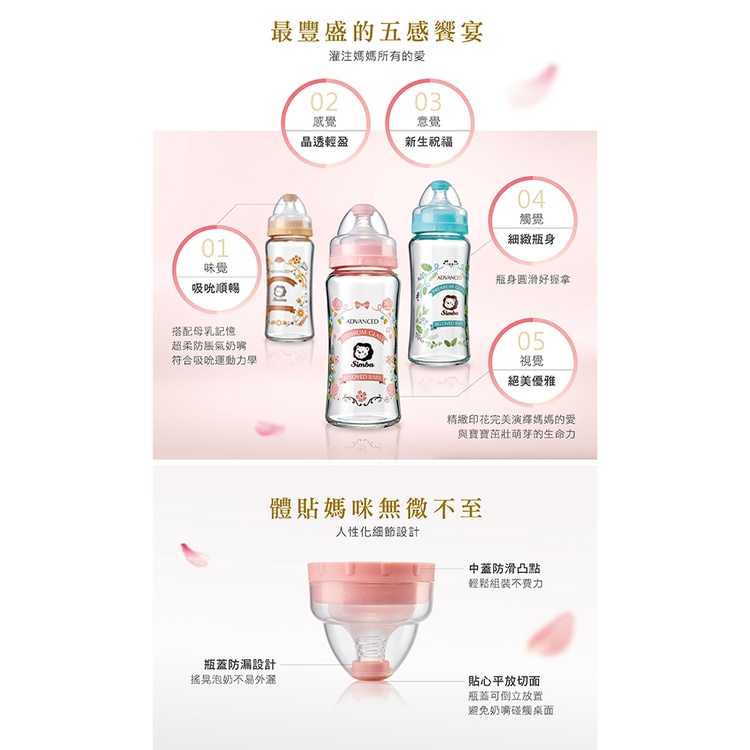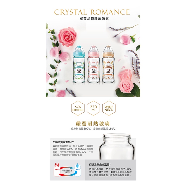 台灣 Simba 小獅王 蘿蔓晶鑽寬口玻璃大奶瓶270ml