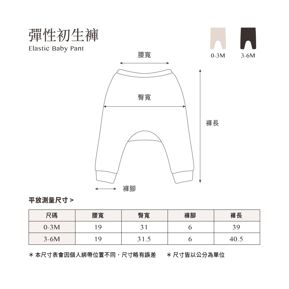 台灣 六甲村 彈性初生褲(0-3M/3-6M)