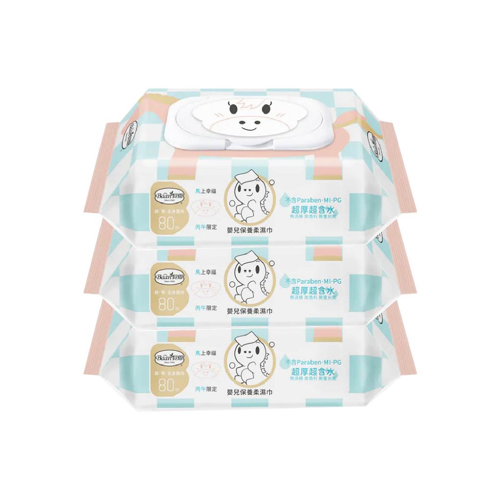 台灣 Baan 貝恩 嬰兒保養柔濕巾-無香料(80抽x3包)