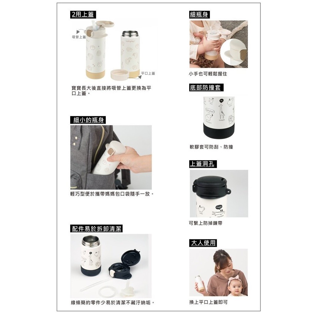 日本 Richell 利其爾 隨身型兩用不鏽鋼保溫杯 160ml/240ml (俏皮黑/水漾白)
