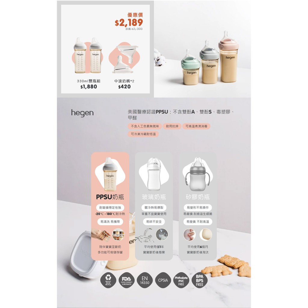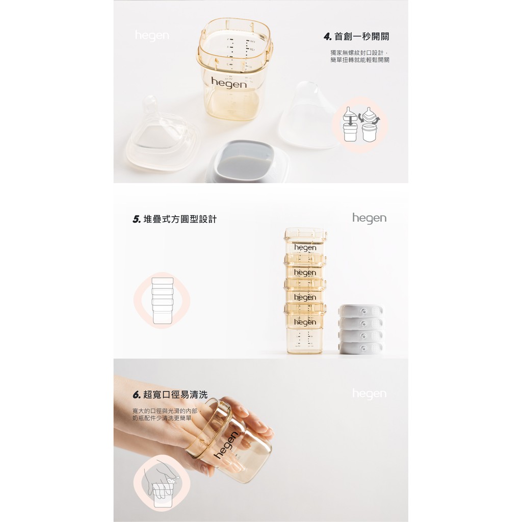 新加坡 hegen 金色奇蹟PPSU多功能方圓型寬口奶瓶150ml(2入)+儲存蓋(1入)