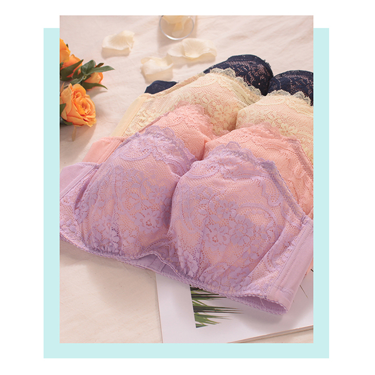 【EASY SHOP】夢幻蕾絲-塑片穩定支撐跳不落平口內衣-水漾紫
