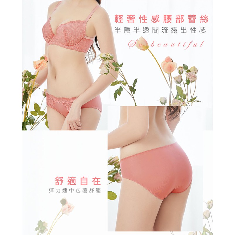 【EASY SHOP】珍奶-花語奇緣 蕾絲拼接中腰三角內褲-乾燥粉(尺寸:M)