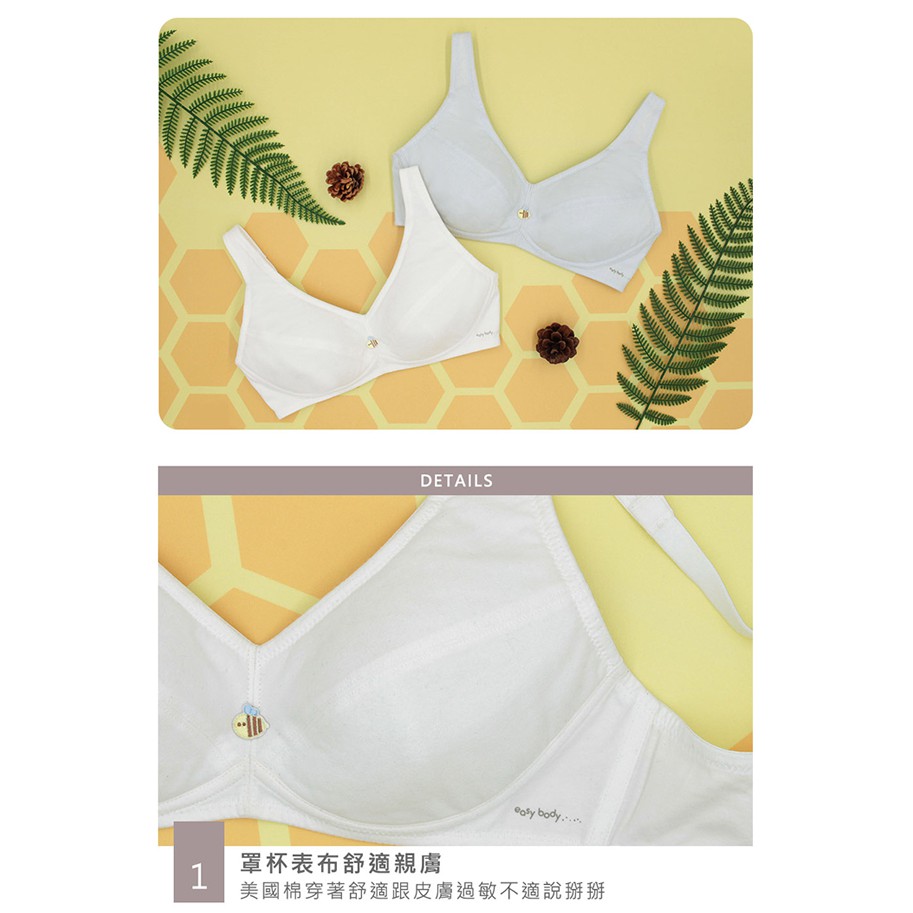 【EASY SHOP】easy body-Honeybee全罩無鋼圈美國棉少女內衣-淡淡天空藍