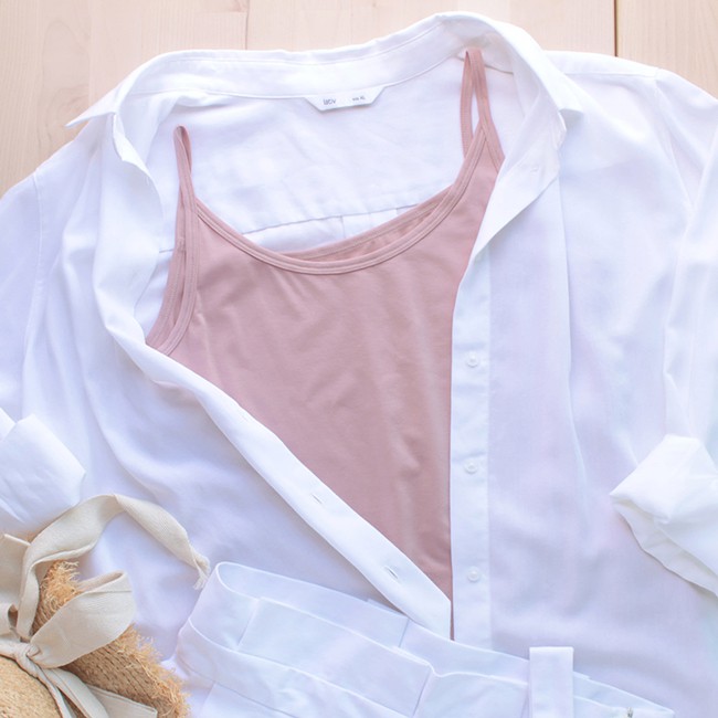【EASY SHOP】Audrey-黑科技能亮衣-散退你的累 舒緩壓力~機能纖維細帶上衣-蜜桃粉