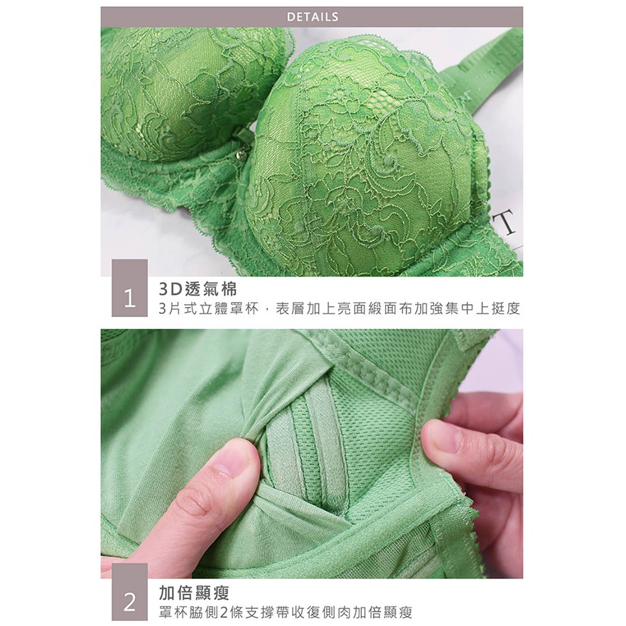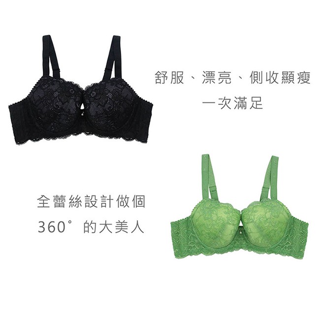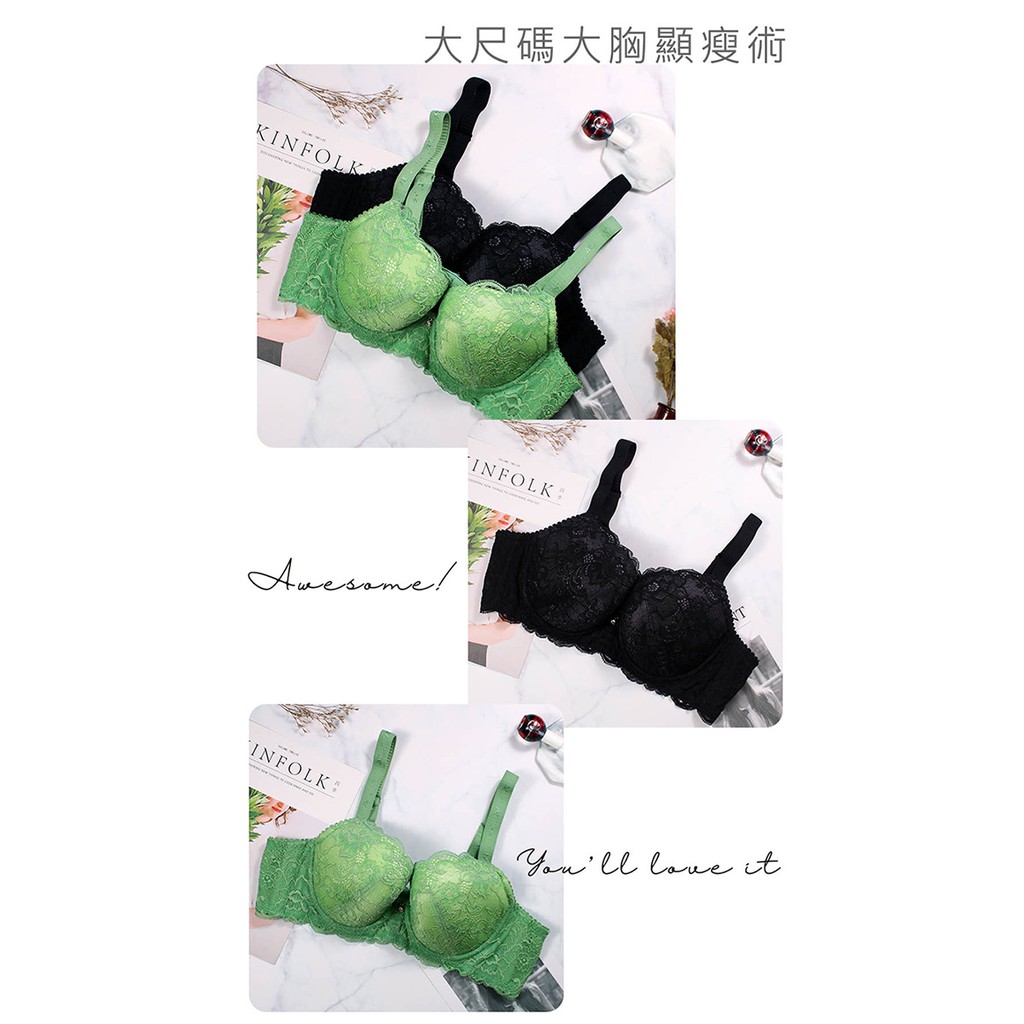 【EASY SHOP】大尺碼大罩杯全蕾絲集中內衣-萊茵綠