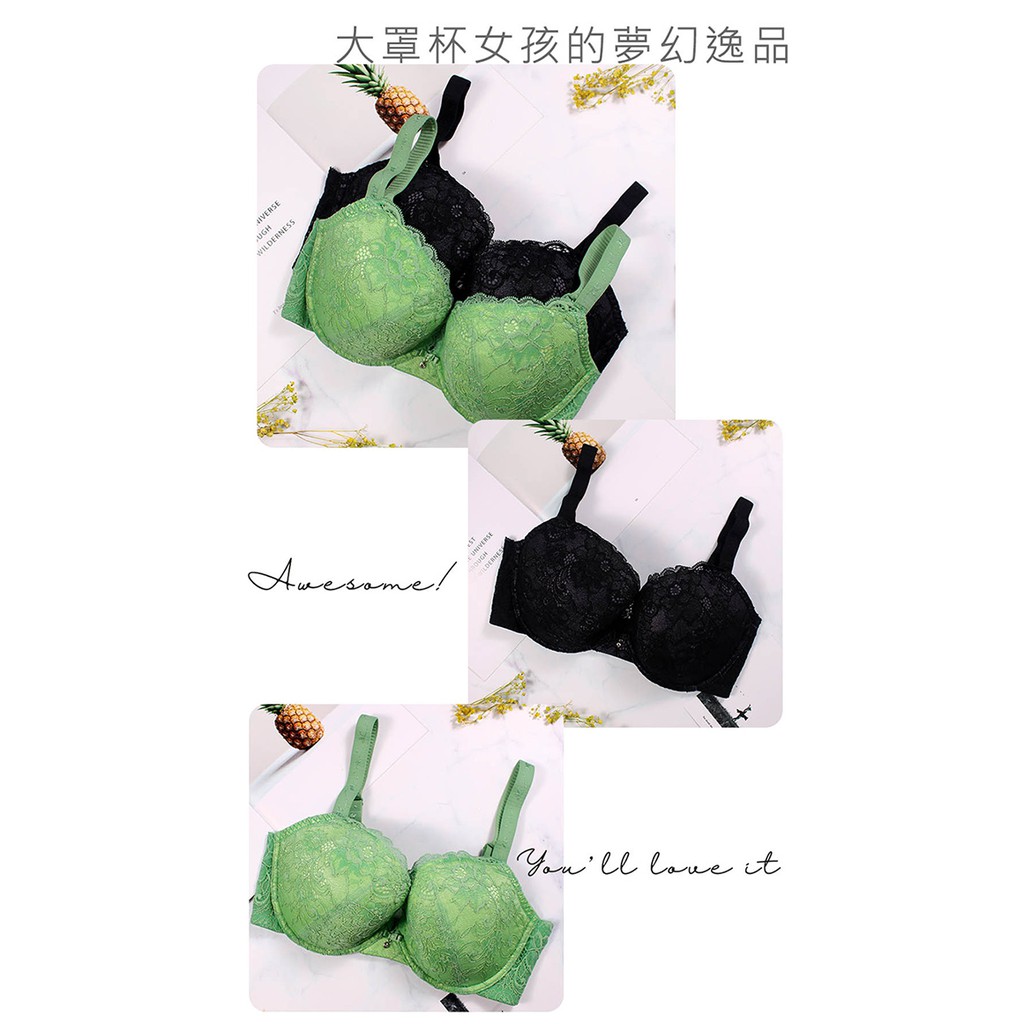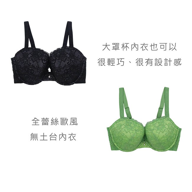 【EASY SHOP】大罩杯全蕾絲無土台內衣-萊茵綠