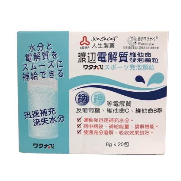 人生製藥 渡邊 電解質維他命發泡顆粒 (8g/20包/單盒)【杏一】