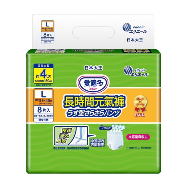 大王 Attento 愛適多 長時間元氣褲 L號 (8片/包)【杏一】