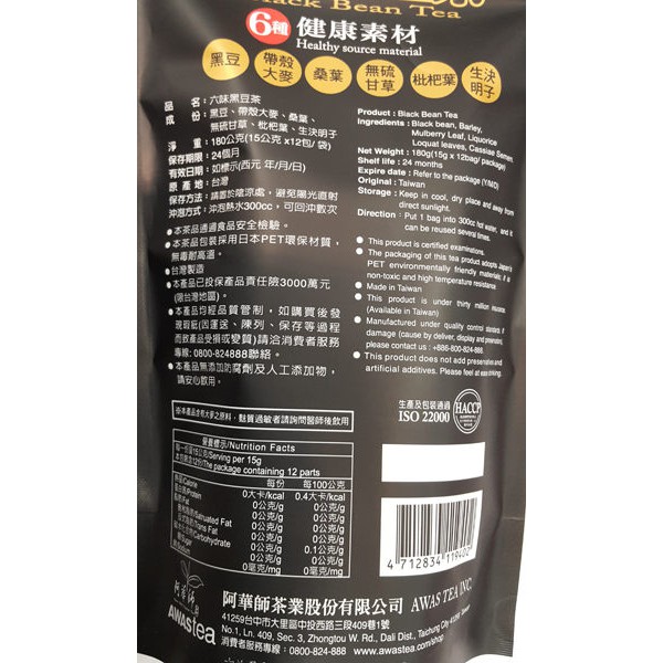 阿華師天籟六味黑豆茶15gx12入/包