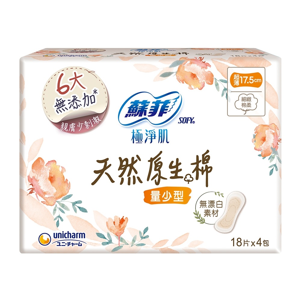 蘇菲極淨肌天然原生棉量少型17.5cm (18片x4包/組)