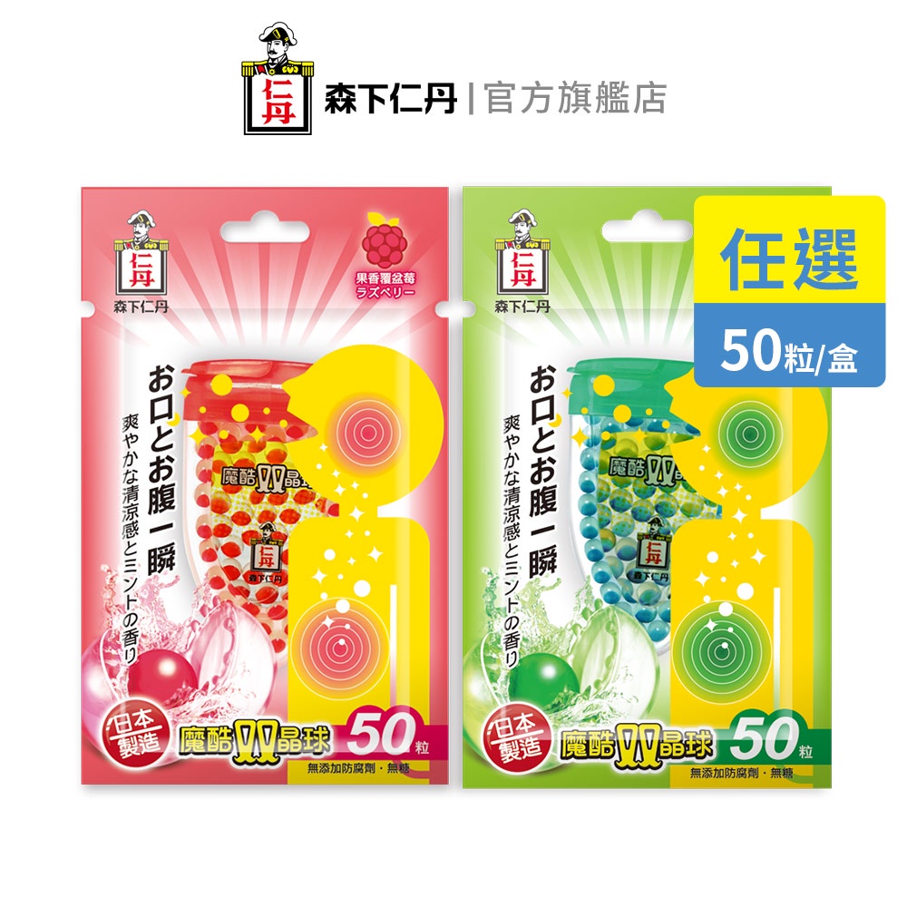 森下仁丹|魔酷雙晶球 勁涼薄荷/果香覆盆莓(50粒/盒)口味任選|官方旗艦店