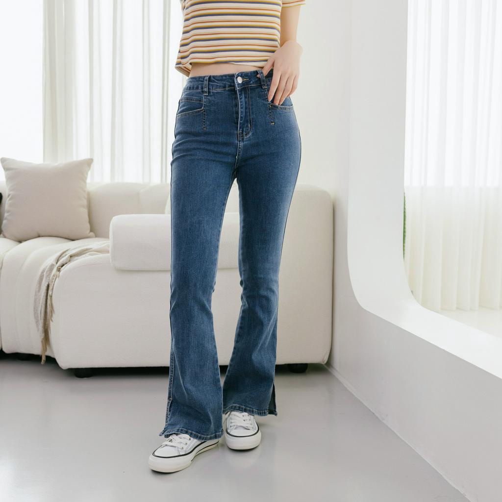 法朵Fado shop|側開岔微喇叭牛仔長褲 259C022 藍 S~XL