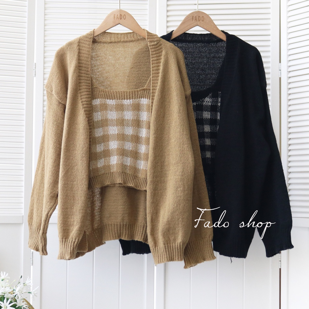 🏷️ SALE ! 折扣商品 / 格紋針織小背心+針織小外套 (兩件組) 9168007 黑