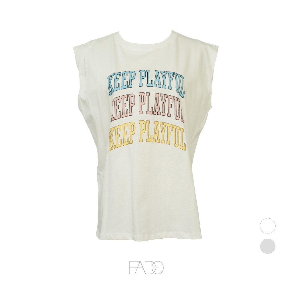 法朵Fado Shop|字母配色無袖棉Tee 0219484 白/燕麥