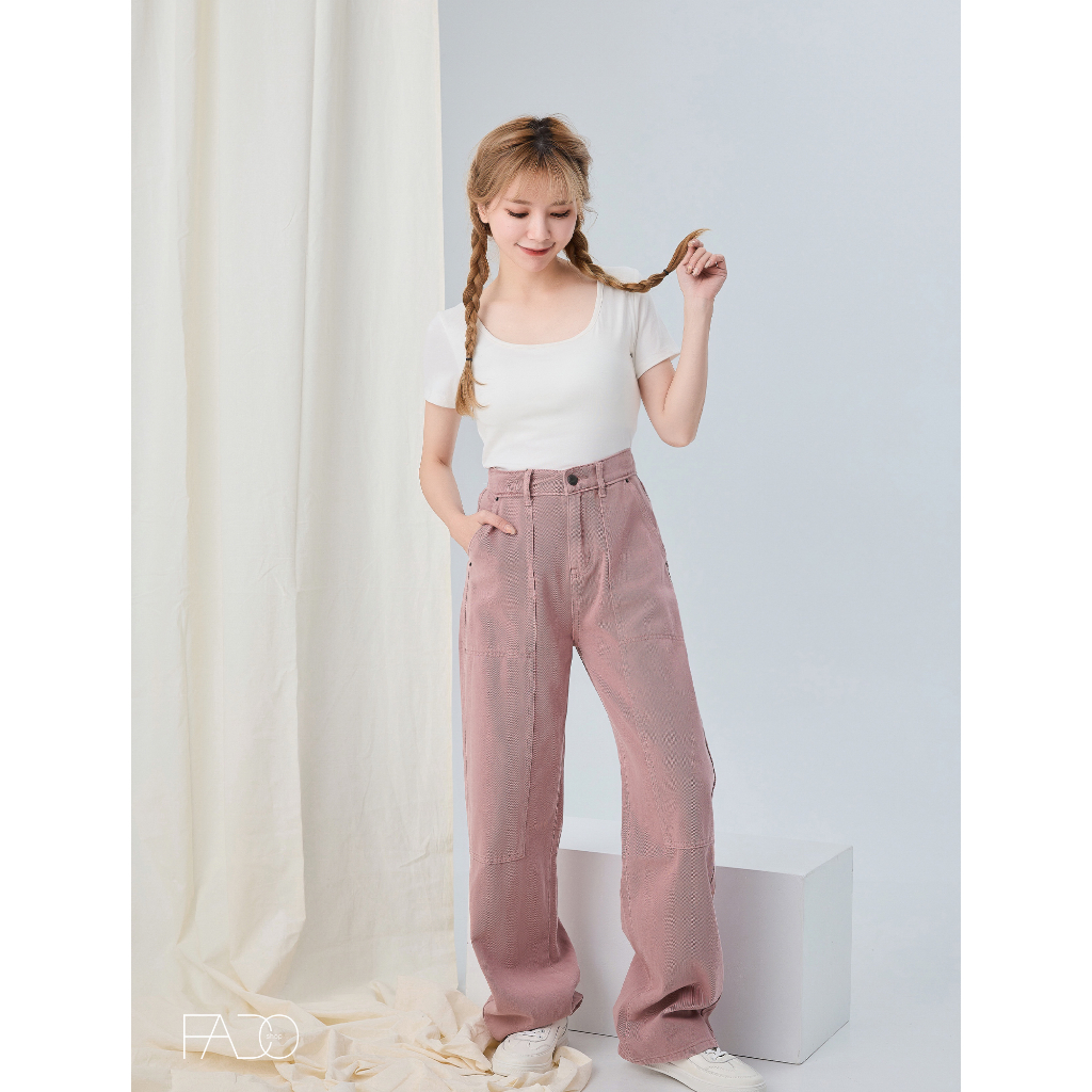 法朵Fado shop|後袋造型水洗牛仔褲 254C005 粉紅S-XL