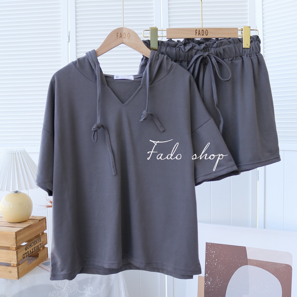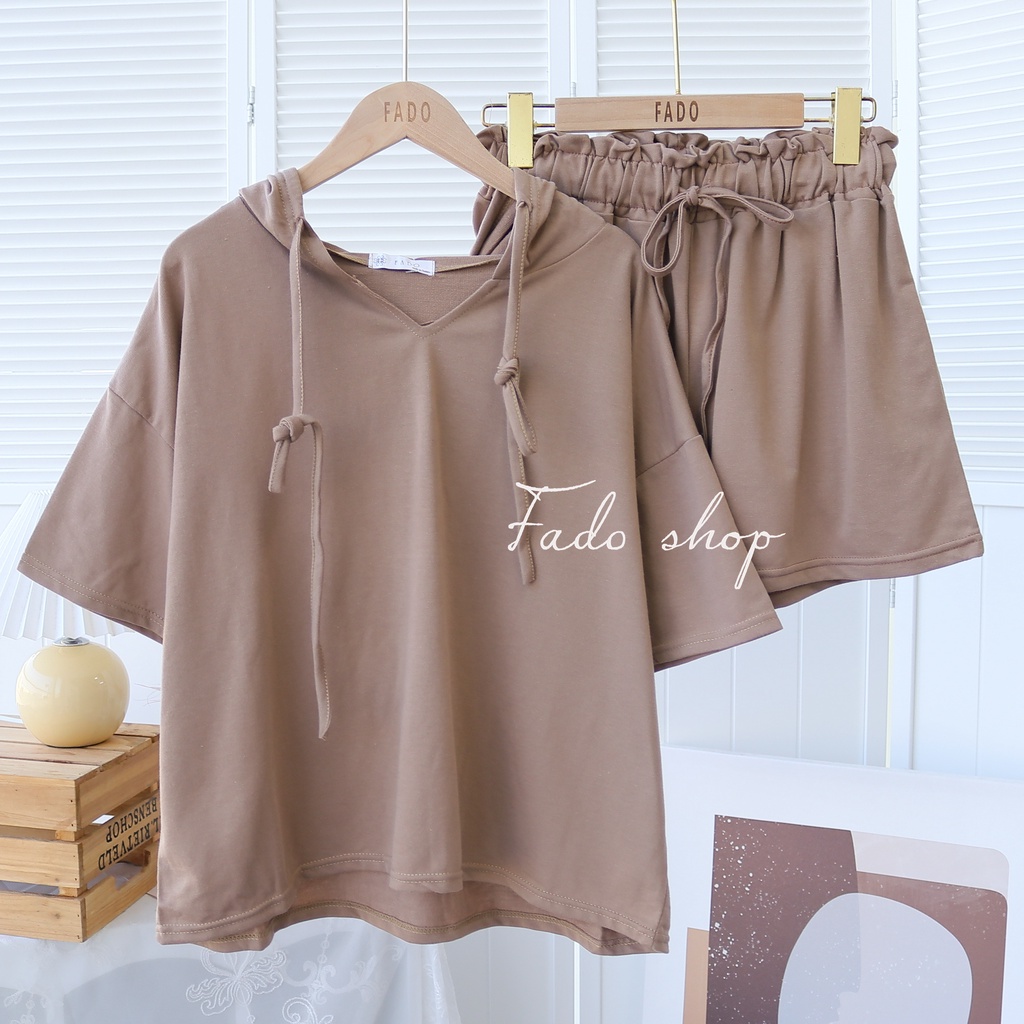 法朵Fado Shop|熱銷款🔥素面連帽Tee+抽繩口袋短褲 925B003 六色