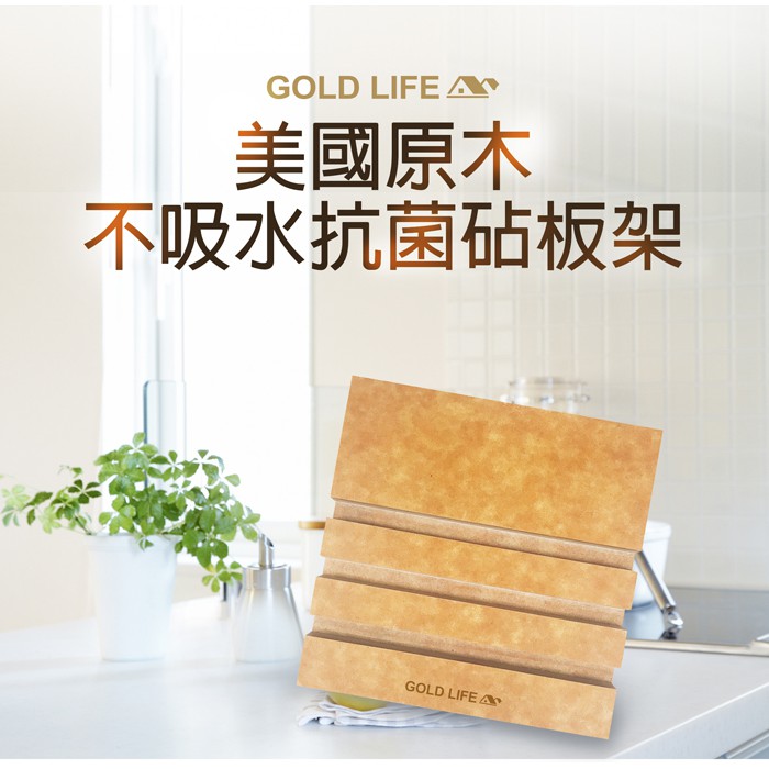 《GOLD LIFE》美國原木不吸水抗菌砧板架(0.6cm專用)