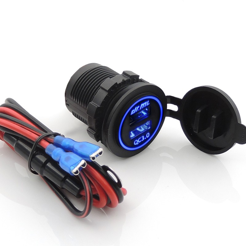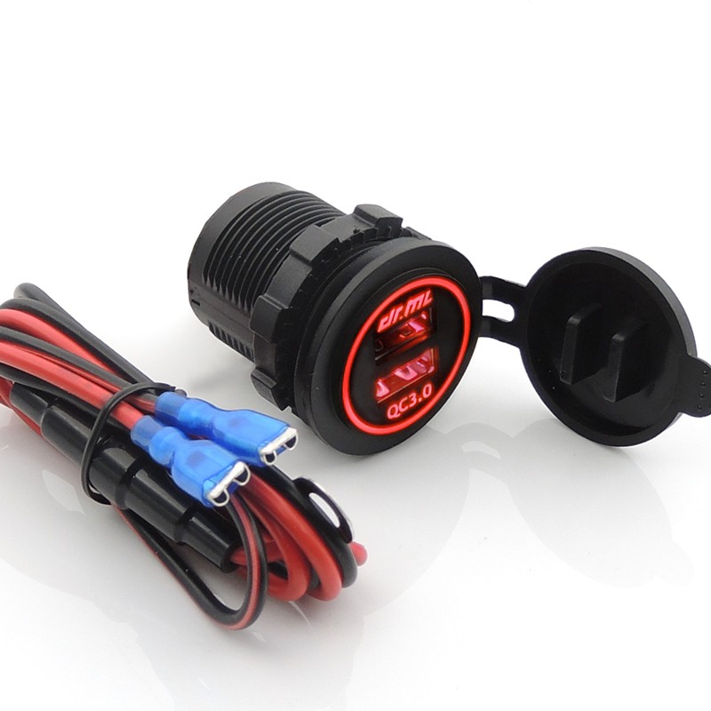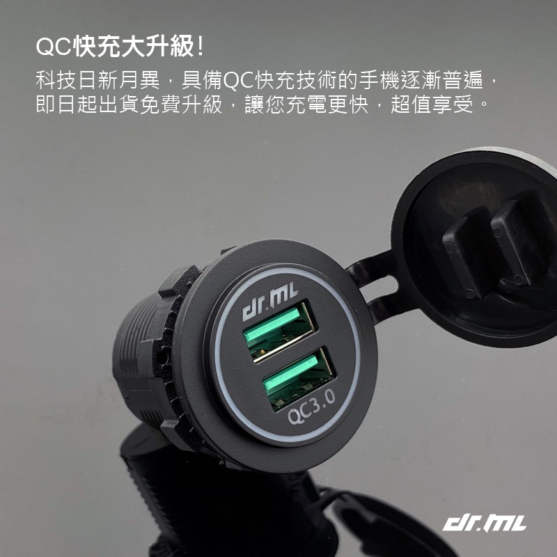 【隔日到貨】QC快充超越4.2A足瓦雙USB充電座 光圈造型 加強防水 保險絲線組 機車USB車充 充電器 摩托車USB