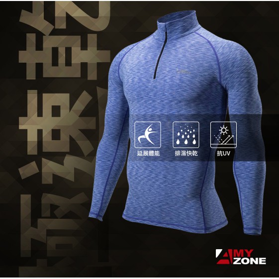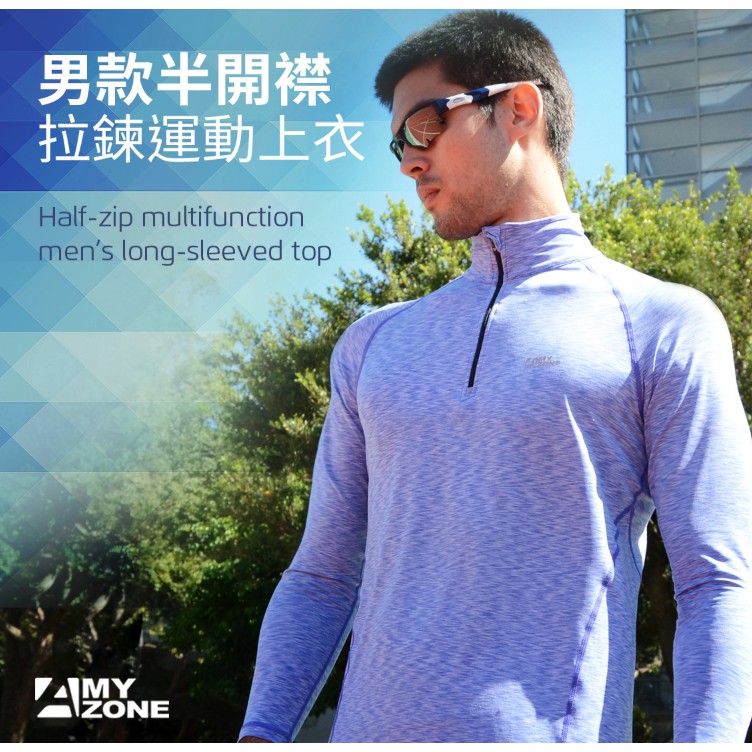 [零碼優惠]【登山慢跑排汗防曬半開襟拉鍊運動上衣/藍紫色/男款】A-MYZONE 登山慢跑越野跑上衣/長袖上衣/健身上衣