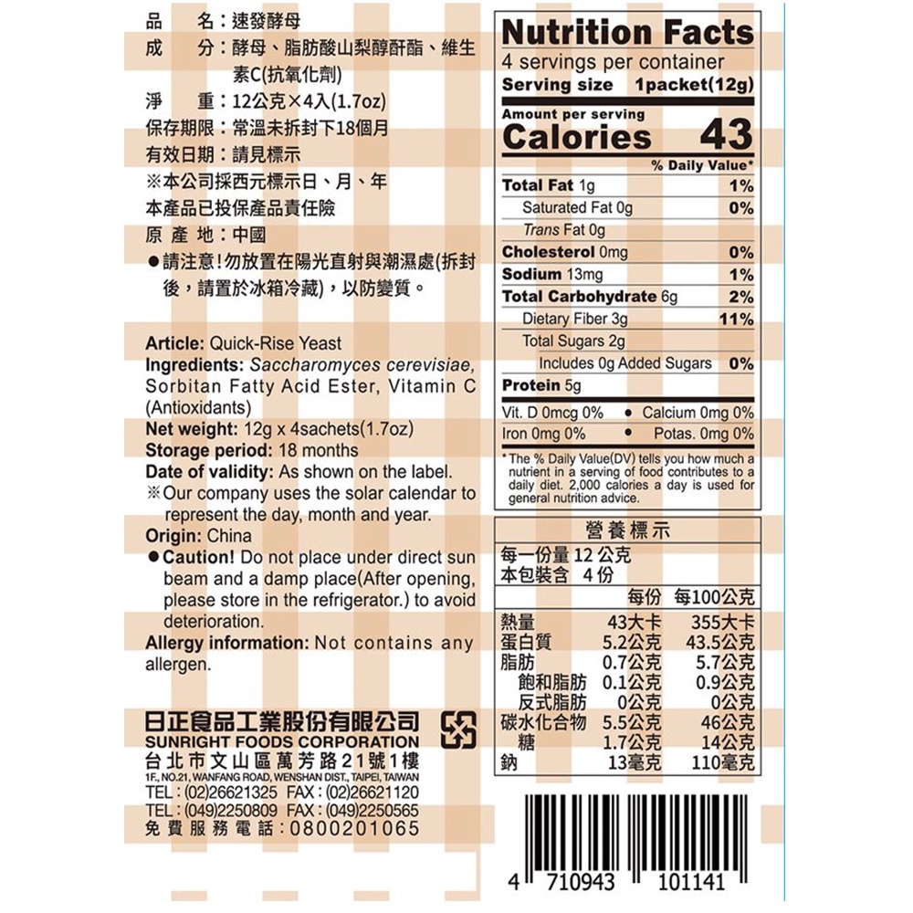 【日正食品】速發酵母粉48G 快速發酵|效果穩定|麵包用|即溶酵母|乾酵母|做麵包材料