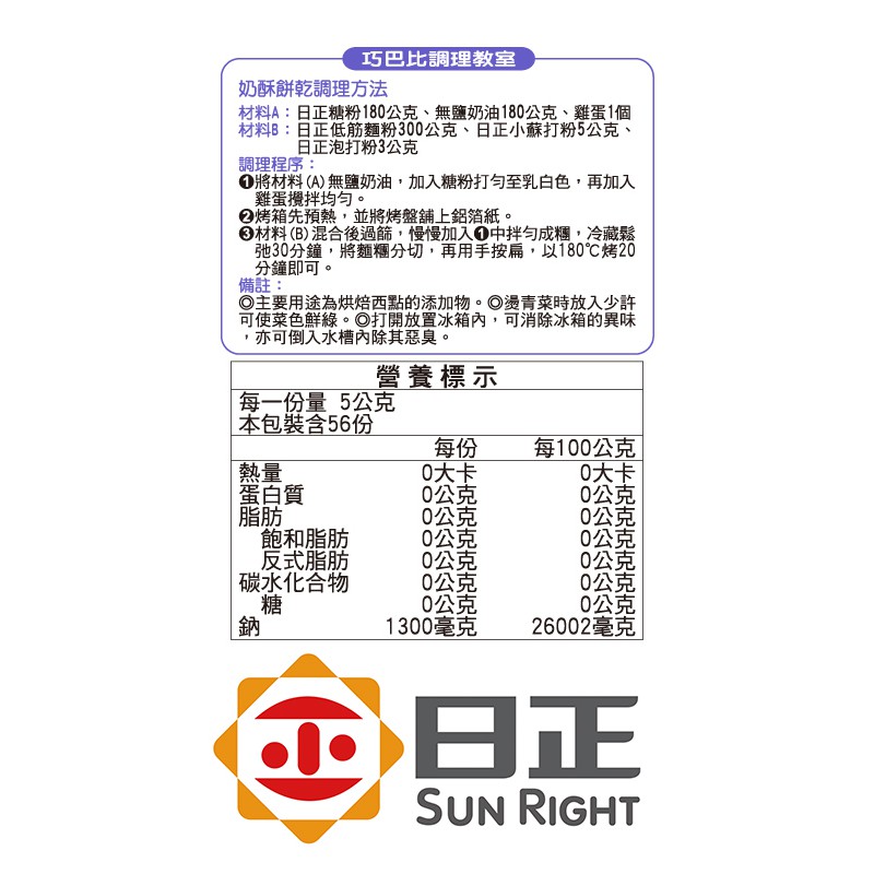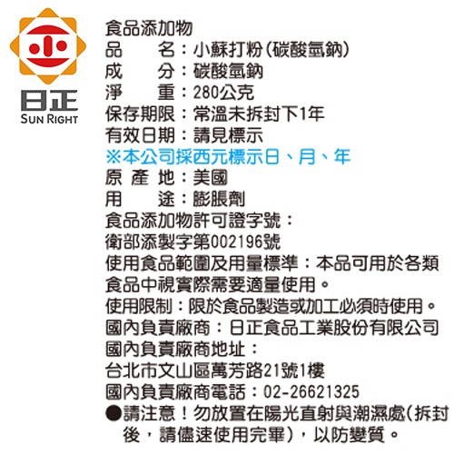 【日正食品】優質小蘇打粉280g 韓國碰糖 食品級 烘焙用小蘇打 餅乾製作