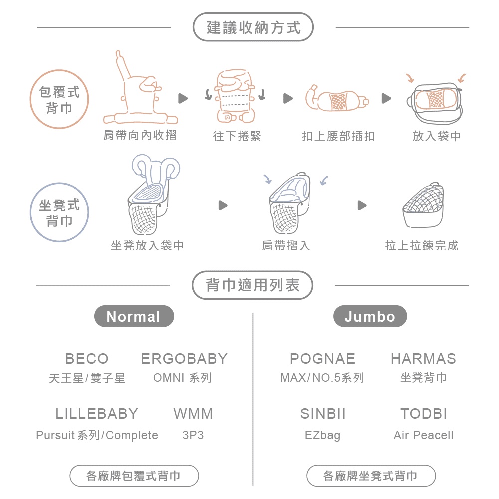 美美加 大開口背巾收納袋Jumbo (適用所有品牌坐凳/腰凳/椅凳背巾揹帶) 平日中午前下單當日出貨