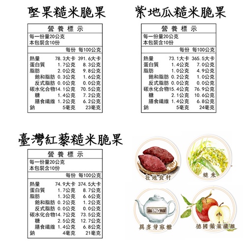 【薌園】糙米脆果 (堅果、臺灣紅藜、紫地瓜)200g