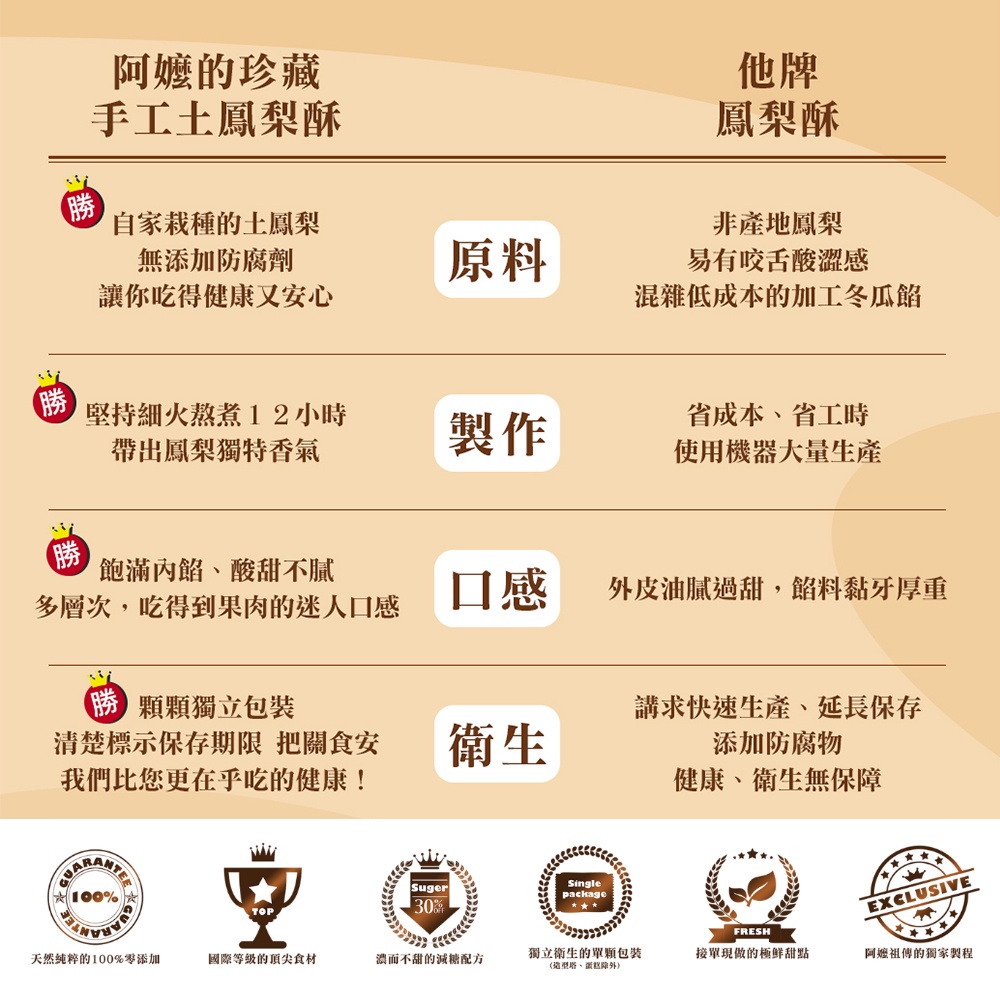 【阿嬤的珍藏】手工鳳梨酥 (阿嬤最有溫度的甜點)(粒粒飽滿,阿嬤家的驕傲)