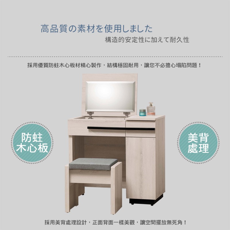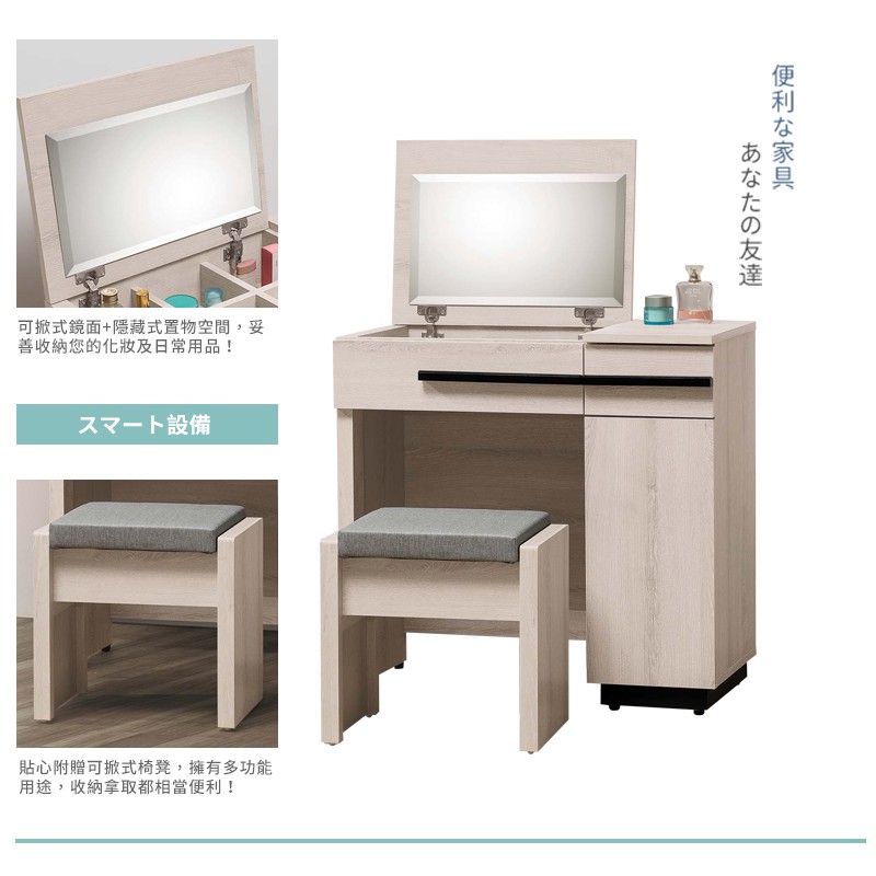 Boden-瑪諾2.7尺時尚掀蓋式化妝桌/鏡台/梳妝台(贈化妝椅)