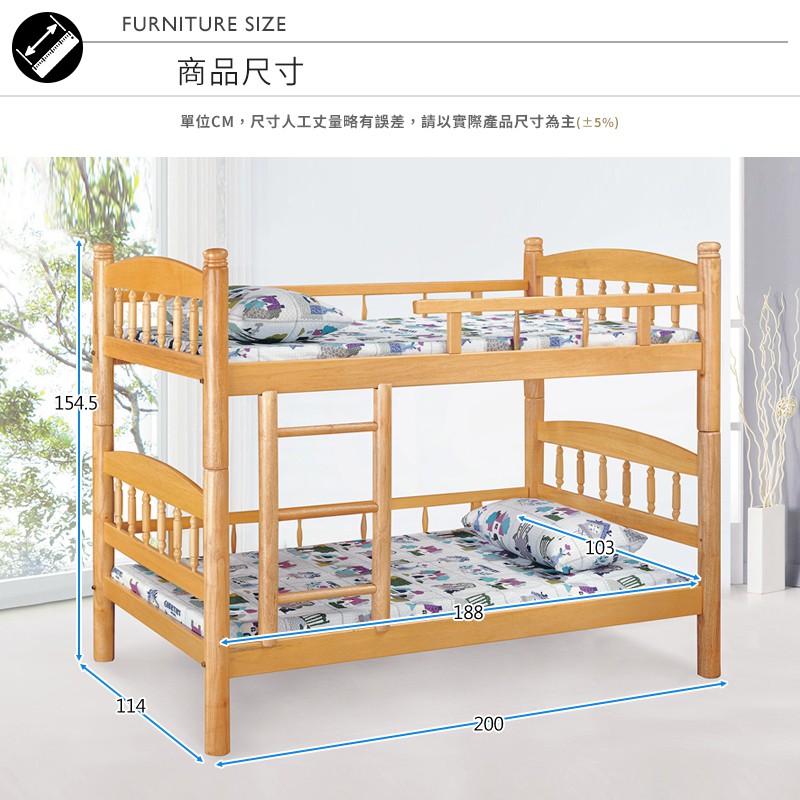 Boden-凱斯特3.5尺單人實木雙層床-松木色