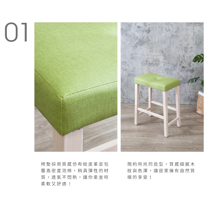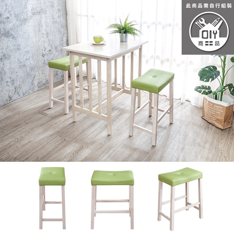 Boden-簡約吧檯椅/吧台椅/休閒高腳椅-洗白色+綠色布紋皮革(二入組合-DIY組裝)