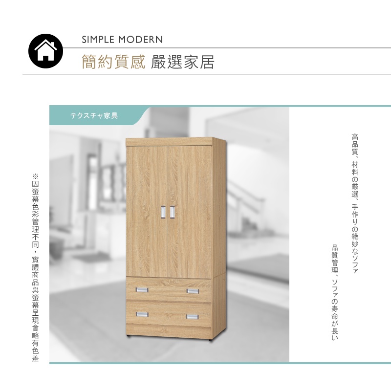 Boden-皮爾卡2.7尺二門二抽衣櫃