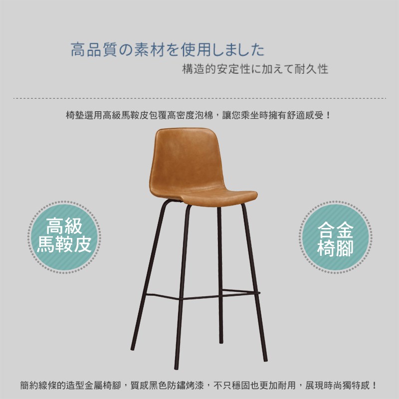Boden-希格工業風皮革吧台椅/吧檯椅/高腳椅(二入組合)