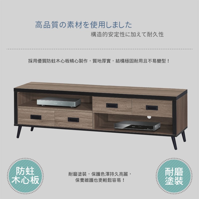 Boden-溫森6尺工業風四抽電視櫃/長櫃/視聽櫃