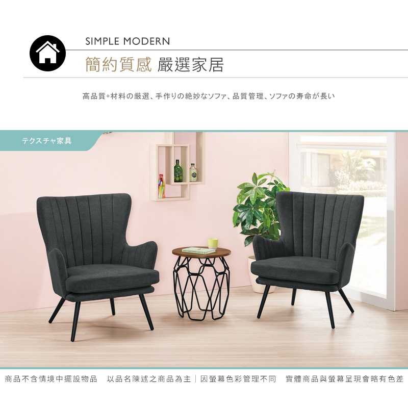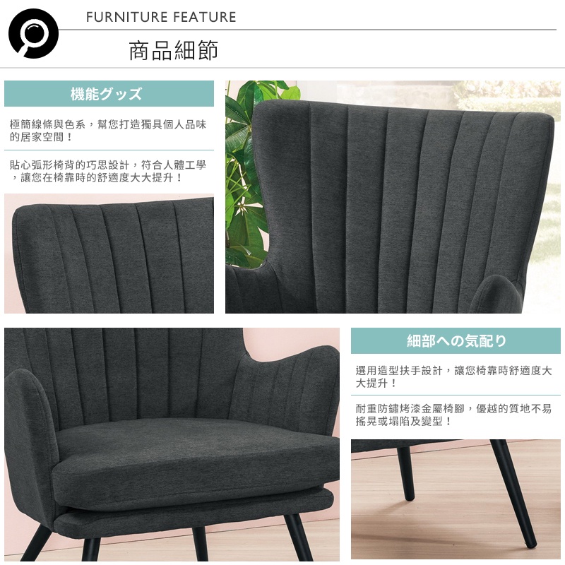 Boden-凱瑟琳深灰色布沙發單人座椅/休閒造型扶手椅/房間椅