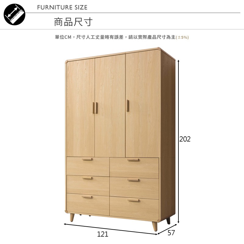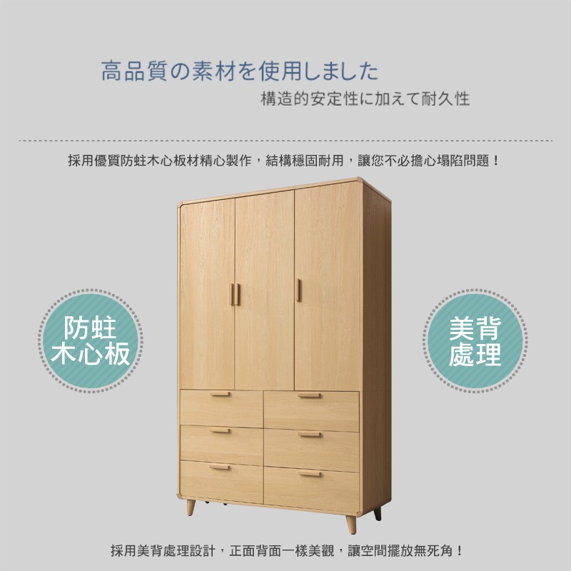 Boden-達芙4尺北歐風三門六抽衣櫃
