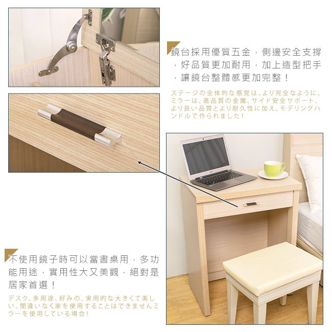 Boden-莫特2尺掀鏡台/化妝桌(兩色可選)(含椅)