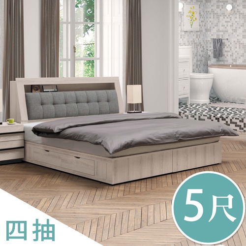 Boden-瑪諾5尺雙人床組(床頭箱+四抽收納床底)(不含床墊)
