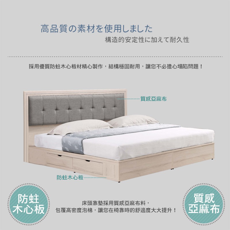 Boden-瑪諾6尺雙人加大床組(床頭片+二抽收納床底)(不含床墊)