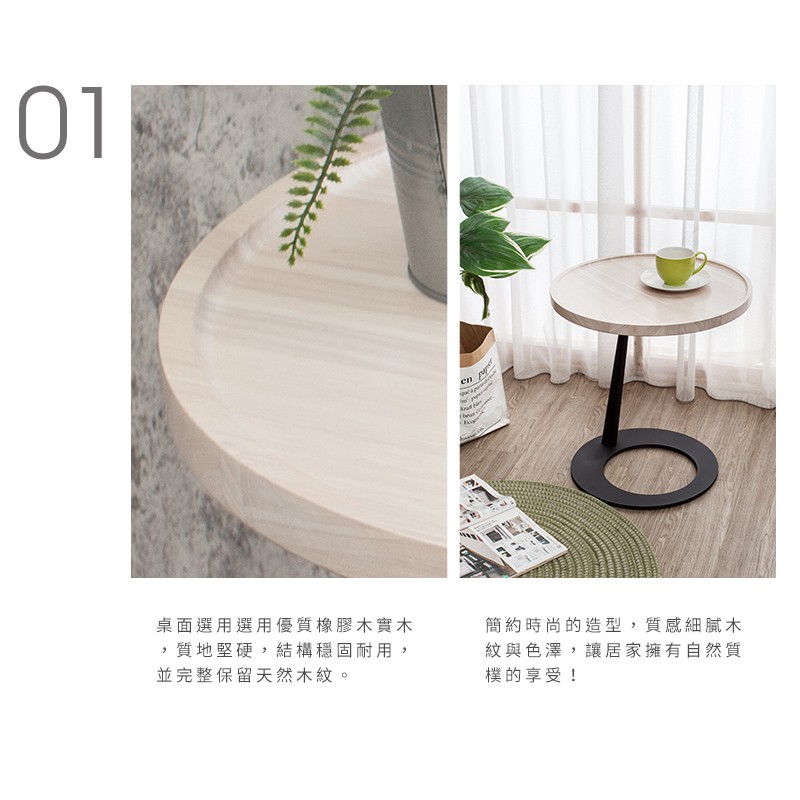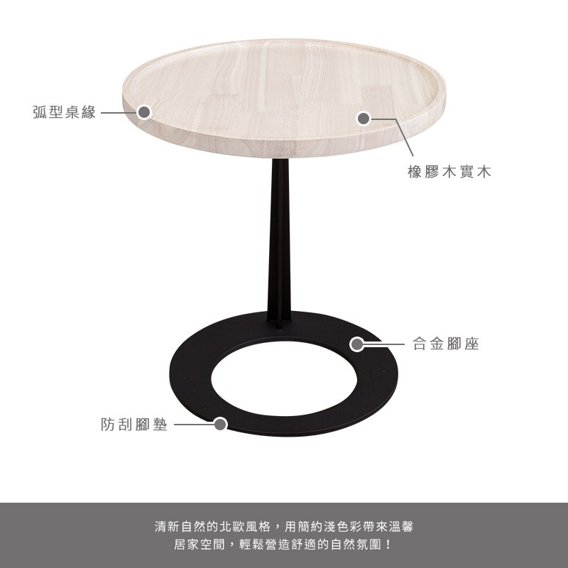 Boden-簡約工業風圓型實木小茶几/邊几-洗白色