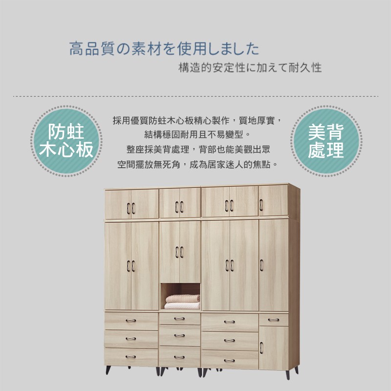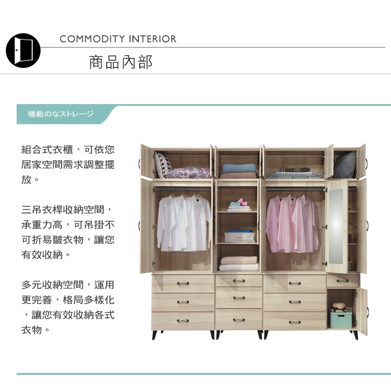 Boden-美娜8.7尺多功能收納加高型衣櫃組合(單吊+二門三抽+雙吊+棉被櫃)